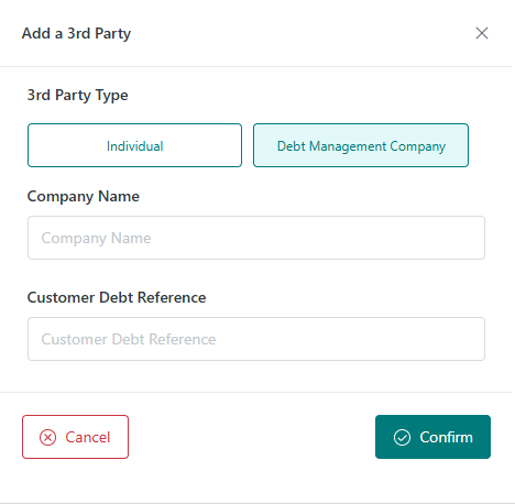 2. Debt Management Company - Complete the Company Name and Customer Debt Reference then click Confirm: